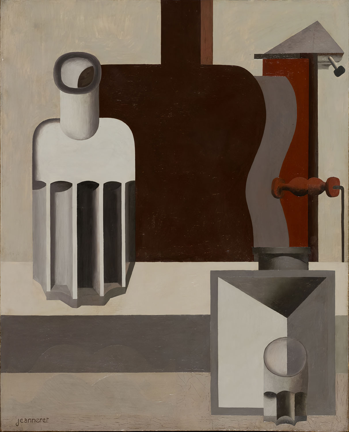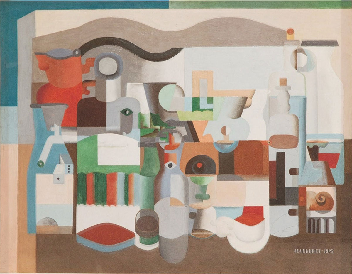 「ピュリスム(純粋主義)」は友人の画家アメデ・オザンファンの主導で始まり、彼との決別によって終焉を迎えた運動です。複雑になりすぎたキュビスムを批判し、対象を純粋な幾何学的形態で表現することを命題とし、第一次世界大戦後の「秩序への回帰」という風潮にもマッチして注目を集めました。彼らが対象として選んだのは、大量生産が生み出した装飾や無駄の無い工業製品でした。「普遍的オブジェ(オブジェ・ティプ)」と呼んだこれらの簡素で幾何学的な美しさは、何世紀にもわたって人々が作り上げた民芸品にも通じるものであり、さらには古典芸術にも通じるものでした。彼らは絵画の対象として描くだけでなく、生活調度として、これらの工業製品を使うことを主張しました。彼らが追求した「ピュリスム」は絵画だけでなく、生活全般に及ぶもので、ル・コルビュジエが設計した住宅建築に展開されました。