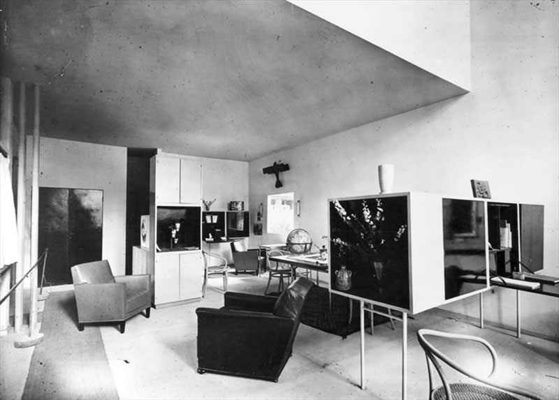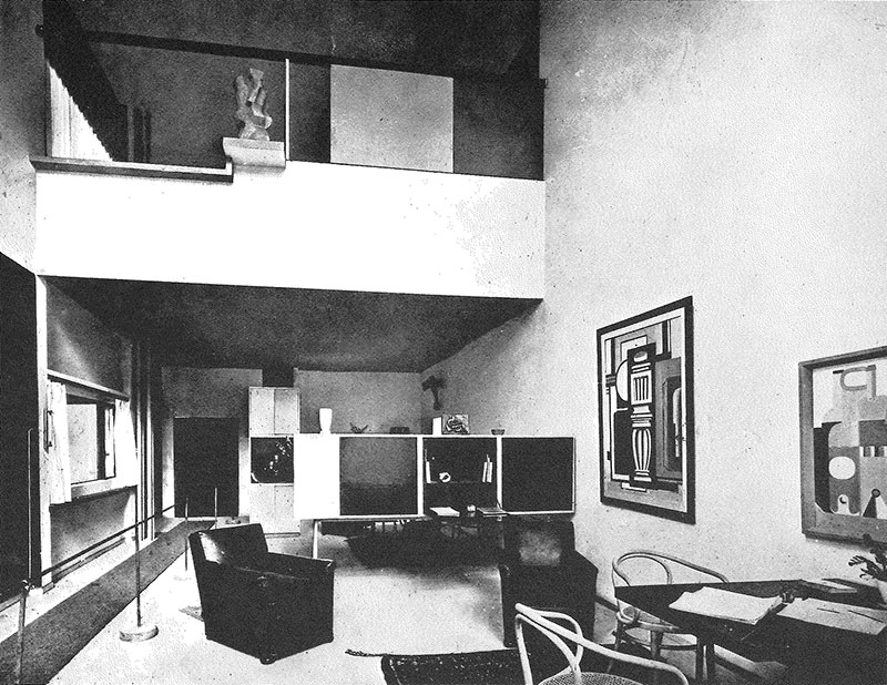 1925年、今からちょうど100年前、パリでは「国際装飾芸術博覧会(通称「アール・デコ博」)」が開催されました。キラキラと輝く幾何学的で装飾的なデザインが一世を風靡し、世界中で大人気を博しました。その博覧会に、ル・コルビュジエは自らが出版していた雑誌『エスプリ・ヌーヴォー』(1920~25)の名前を付けたパビリオン《エスプリ・ヌーヴォー館》を作って参加しました。そこでは一方ではパリの大改造計画「ヴォワザン計画」を紹介し、もう一方では、その計画の中で建てることを想定していた集合住宅《イムーブル・ヴィラ》のなかの 1住戸を紹介しました。モデルルームの室内には大量生産の工業製品による食器や調度品が置かれ、壁には自分や友人たちが描いた絵画作品や彫刻作品が置かれました。《エスプリ・ヌーヴォー館》はそれまでル・コルビュジエが活動してきた「ピュリスム」の画家としての活動を示す最後の機会でもありました。